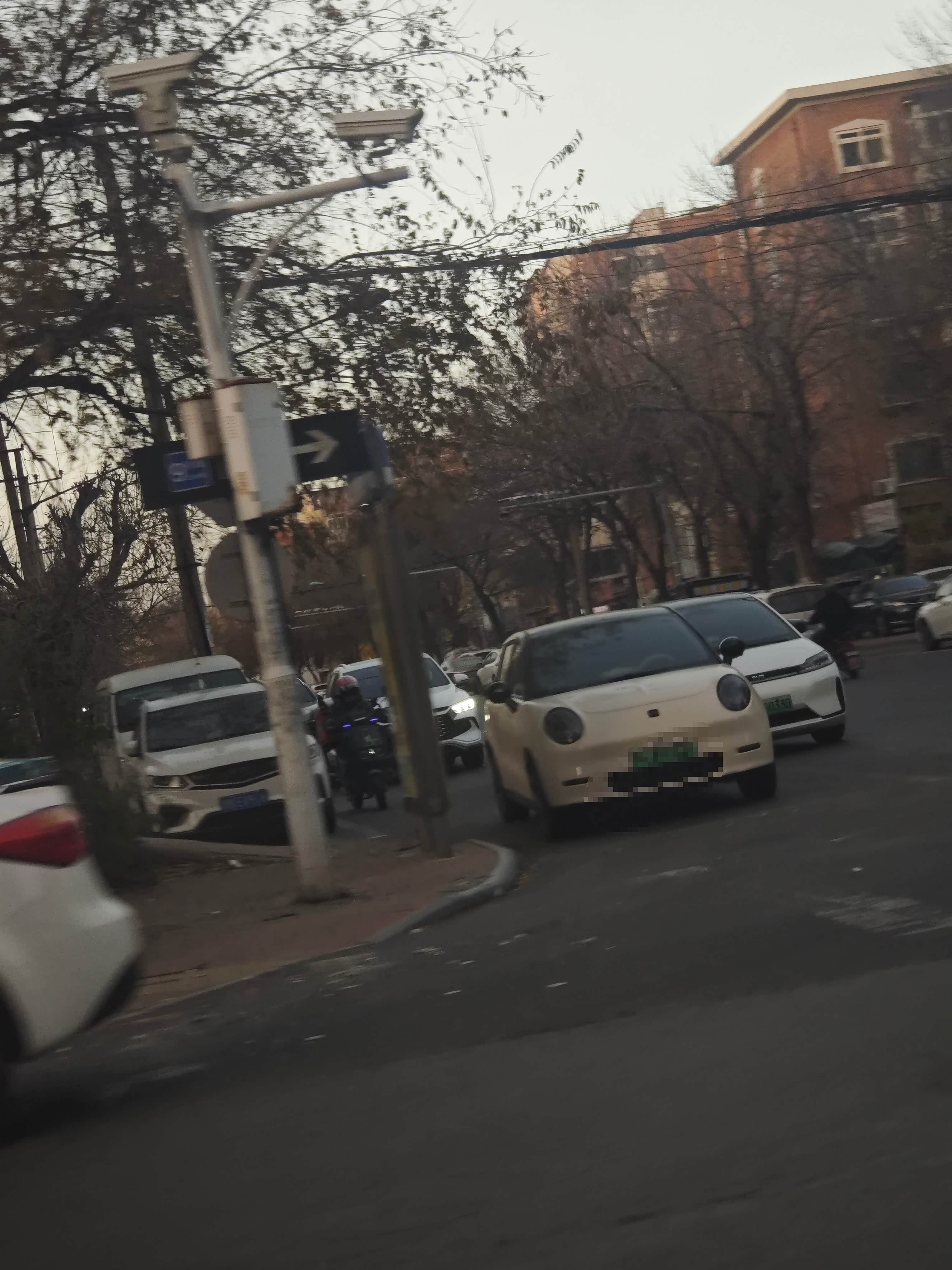这是从市里往回返的时候遇见的第一辆胖三,也是清新米的颜色,有一说一还是米色的,胖三最多了,颜色百搭,男女老少皆宜。