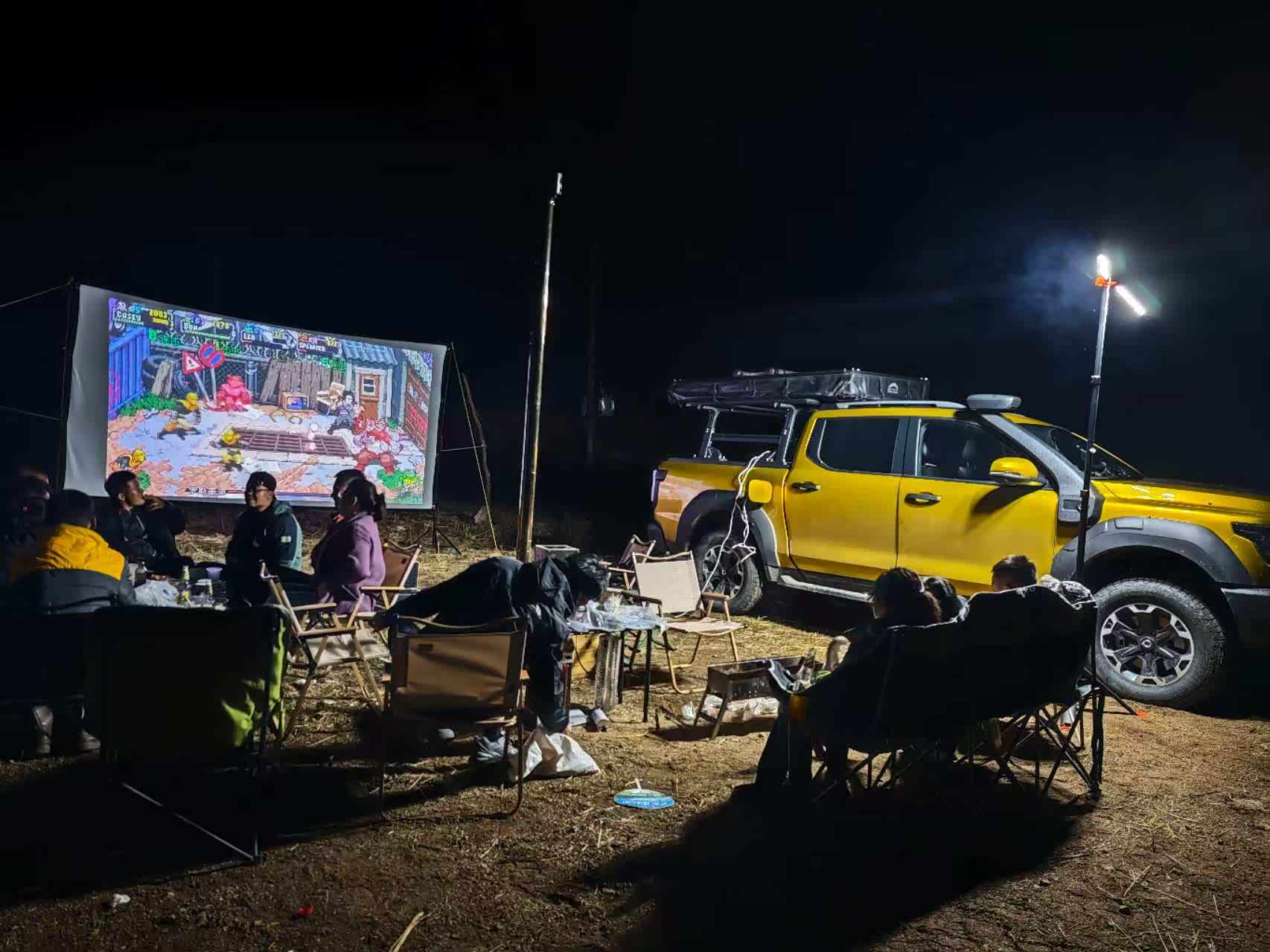 洗车时,山海炮 Hi4-T的外放电功能能完美驱动 1.8 千瓦洗车机,货箱内的大水罐可储备足量清水,不仅能清洗自己的爱车,还能在露营地或户外为同行车友提供洗车服务,只需做好放电口的防水保护,就能轻松完成清洁。