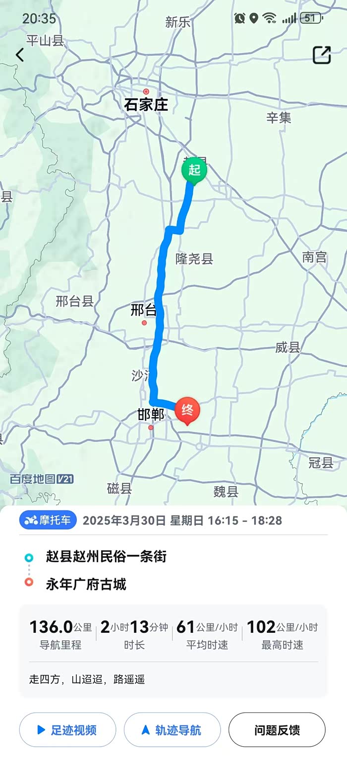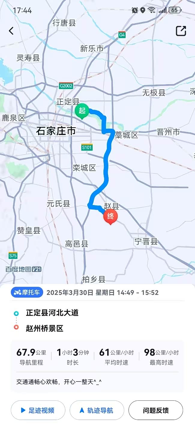136km,走了2个多钟头,主要是赵州桥往南在修路,路况极差,坑死人