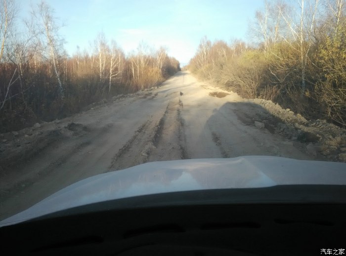 铺装路面被拉牧草的重型卡车压得体无完肤,全是坑坑洼洼,完全开不起来!比起川藏318国道有过之而无不及!速度慢下来后后面很多车都跟了上来,基本都是北京的。行驶速度大概在30左右,并且是在无休止的不停的颠簸,路上还有很多突起的尖利石头,对车对轮胎对人都是极大的考验!跟着我车缓慢行进的大概有6辆车,行驶大概10几公里后有4辆轿车掉头退出折返,剩下我们3辆越野车继续龟行前进!虽然速度不快,但是依然能够扬起漫天的尘土,能见度很低...1个多小时后我看了一眼后视镜,后面的车都已经退出了哎....一路的美景换来的是无限的颠簸与疲惫。沿途看到有3辆车胎被扎破抛锚了,心里更是忐忑!行程经过300公里,路好走了点,本以为后面一路平坦了....进入满都宝力格林场后才发现,之前的路都不算什么哈哈!这里才是极品!经询问翻过林场两座山大概80公里!这根本就不能算是路!野帝在这80公里中不断的上下颠簸,其中飞行了3次!对!你没看错!是飞行!真的四个轮子离地飞起来了!诸位看官自己琢磨颠簸的程度吧......沿途又有2辆车被石头扎破轮胎趴窝(林场没有手机信号,除了等待没有他法)~历经3个半小时,走完了这80公里~终于回到了国道上,此时的心情就是自己是这世界上最幸福的人哈哈!不好意思让媳妇陪我来受罪了!晚上19:40到达阿尔山市!阿尔山市真心美的一塌糊涂哈~~提前订好了别墅酒店,开好房间打开电热毯就冲出门吃了一顿热气腾腾的火锅!(摄氏零下5度