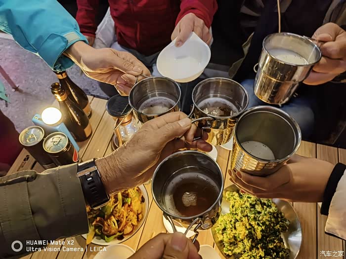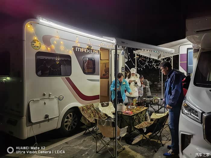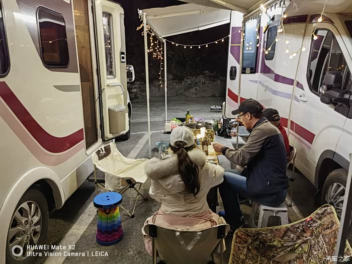 丫头非常开心,第一次参加车友们的房车露营,她戏说:老妈你居然在储藏箱带了这么多东西?…是呀!我想着川西路不好走,还断舍离了很多露营装备。车友K把新买的烤盘拿出来烤肉,车友T做了她拿手菜…真没想到车友K还是做菜的一把好手,男孩这动手能力真的非常强了。“干杯”“干杯”…K的爸爸妈妈一起加入我们热闹的行列!餐后继续音乐嗨聊…我绝对相信这一晚的露营一下拉近我们三台车车友的距离,为我们下面的高海拔自驾互相帮助互相牵挂奠定了基础。
