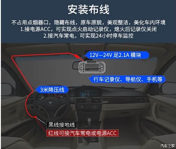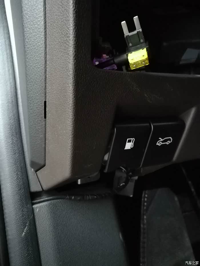 第一种方法不能实现停车监控,车钥匙拔出来或者一键启动开关关闭,断开电源后点烟器就会断电,另外就是走线不美观,即使像论坛里其他车友从手套箱、地毯隐蔽走线,我也觉得不够美观,因为最终会在点烟器那里插个记录仪充电器。