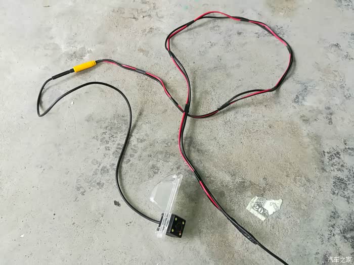 1、将后摄像头和我买的牌照灯罩安装连接好,如图: