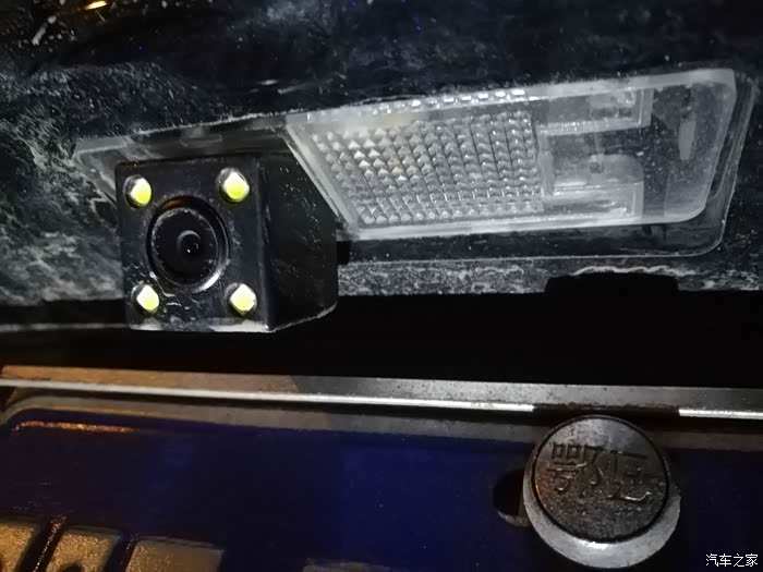 2、在车牌上方,两个牌照灯之间的位置用手电钻钻孔用螺丝将后摄像头固定;