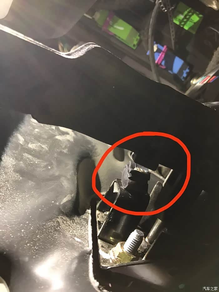离合下面那点有洞 看我的照片就知道是在那个位置 然后找一颗螺丝找个胶垫子 螺丝穿过胶垫子然后用螺帽固定在离合下面的那个洞上 胶垫子不要太厚 根据自己的离合行程来决定