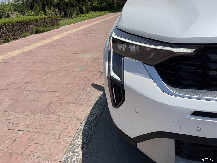 上市才没几天,所以这车还是挂着临时牌照,老婆挺喜欢车展上跃动红那款,觉得比较有辨识度,我觉得试驾的这款珍珠白也还不错,整体看着比较年轻和时尚,我说这车怎么看着这么眼熟,前脸是起亚家族式的虎啸设计,并且搭配了星图LED大灯,在镀铬饰条的修饰下显得更加精致。