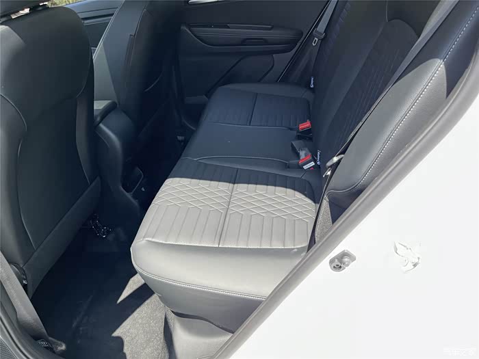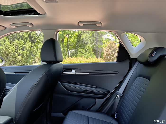它的内部空间算不上很充裕,毕竟也是一款入门级的小型SUV,但是我们一家三口用还是可以的,我身高178cm,体重75kg,坐在前排腿脚活动比较自如,在后排活动就有点受限,腿离前排座椅也就一拳多的距离,老婆和儿子坐在后排就还好。