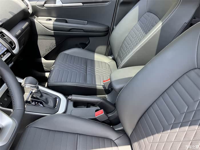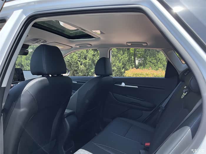 这车是全黑的内饰,座椅是仿皮材质,感觉还挺适合我们家,耐脏也比较好打理,弄脏的地方用抹布擦一下就行了。前排配备了10.25英寸的液晶仪表盘和10.25英寸的悬浮式中控屏,支持CarLife、语音控制和在线娱乐等功能,在车上就能听歌、看电影,这个中控台的手刹居然是机械式,个人觉得有待改进,换成电子手刹会不会更好一点,车顶还自带了一个小尺寸的天窗。