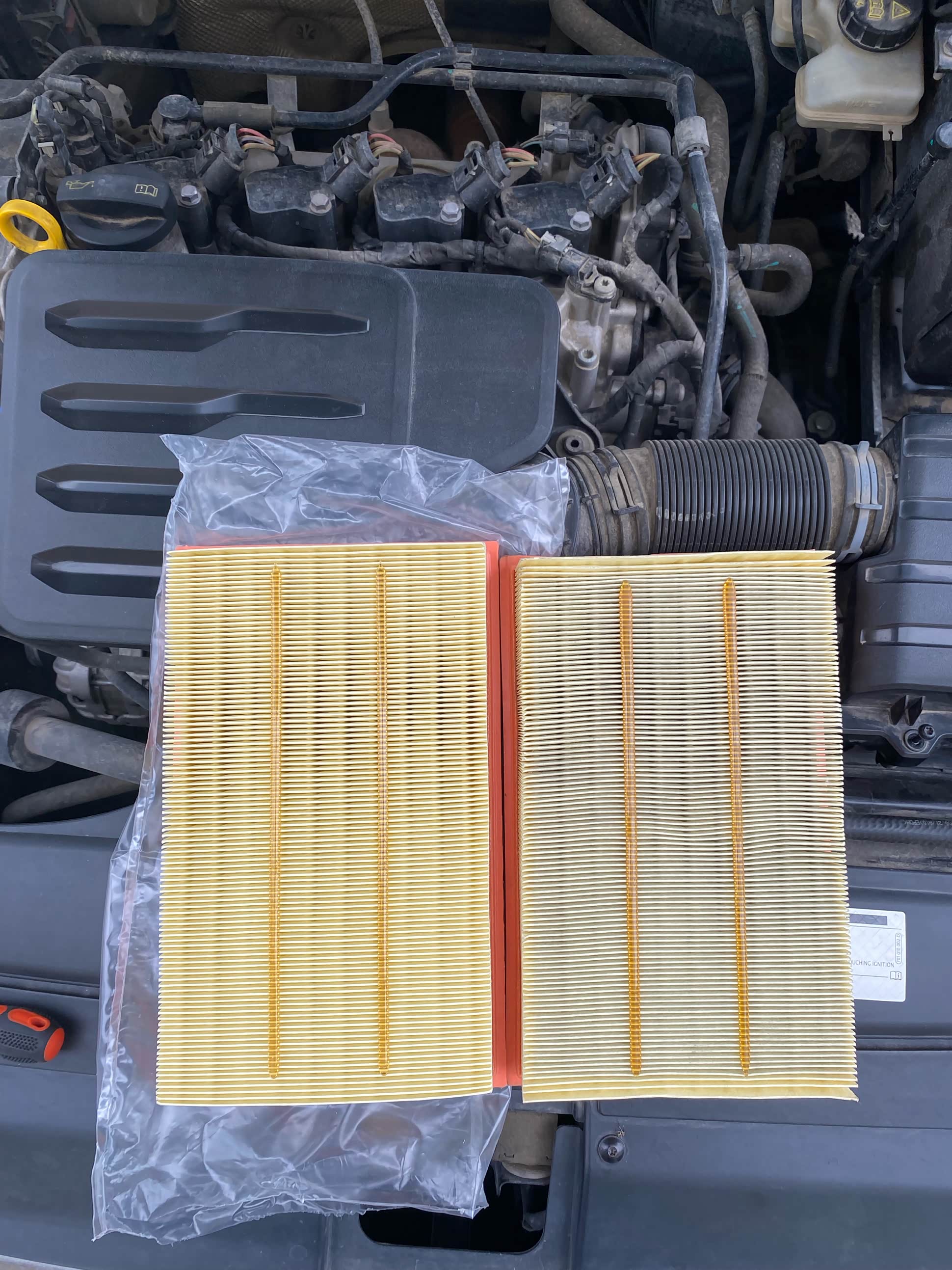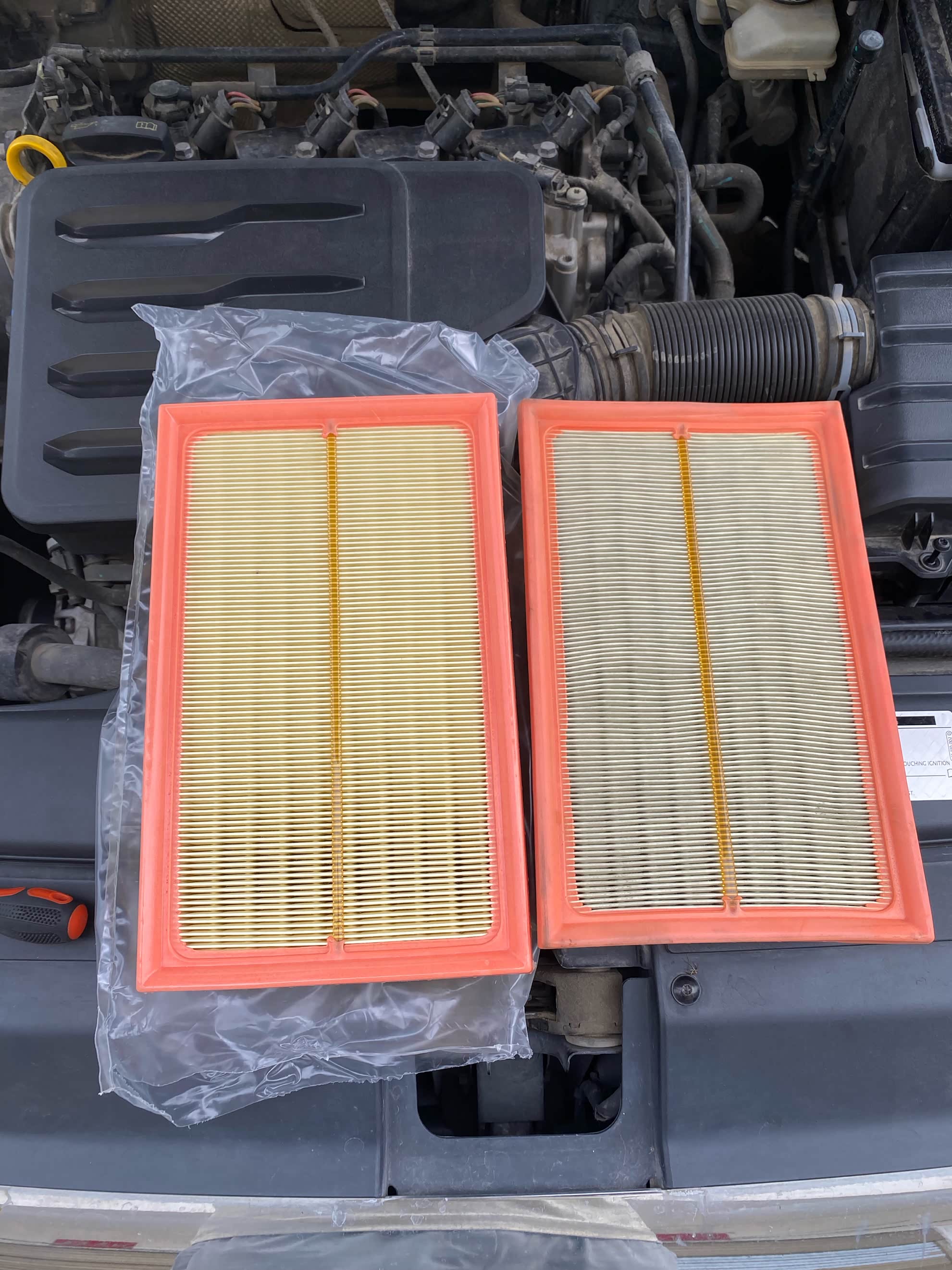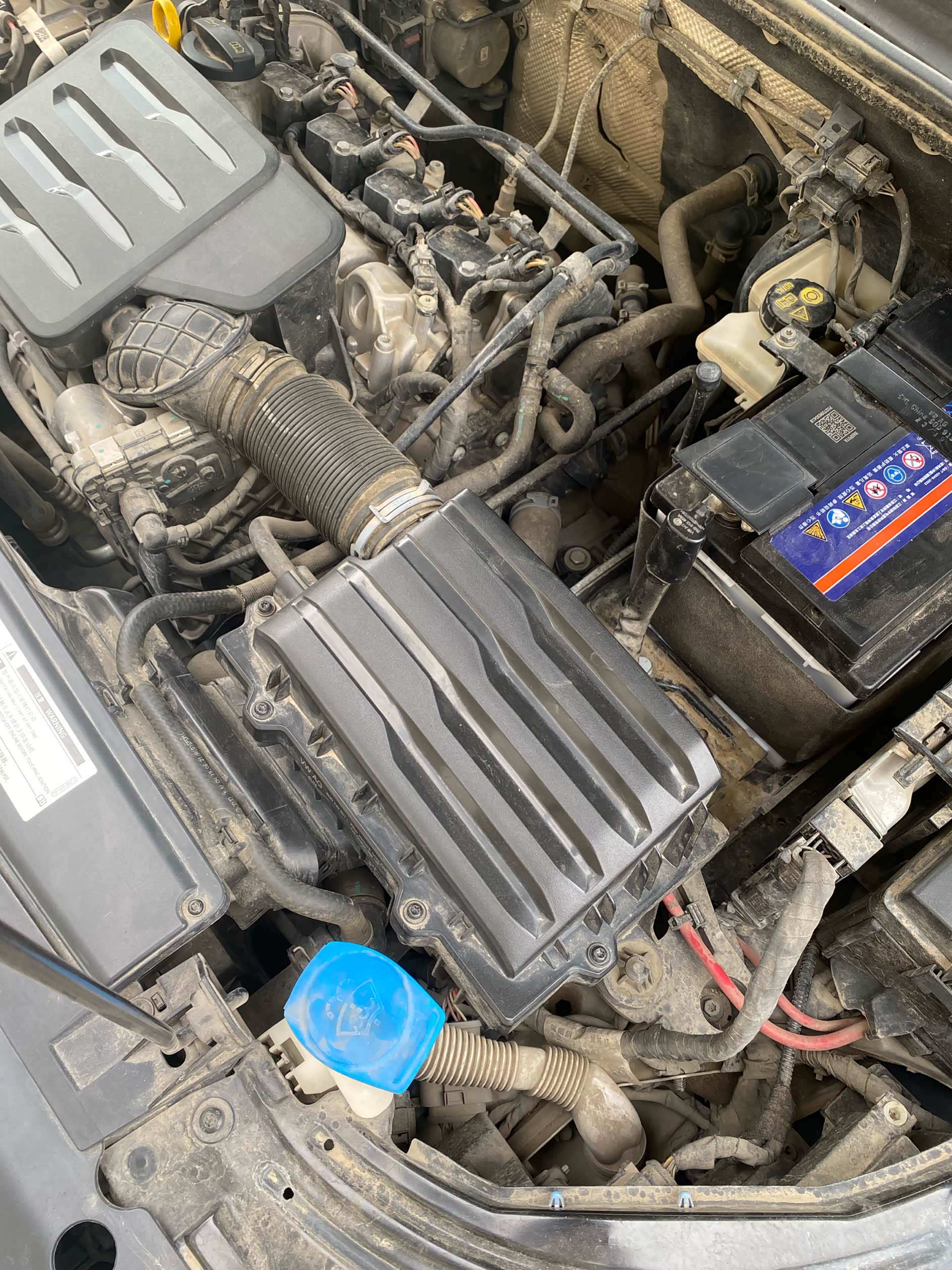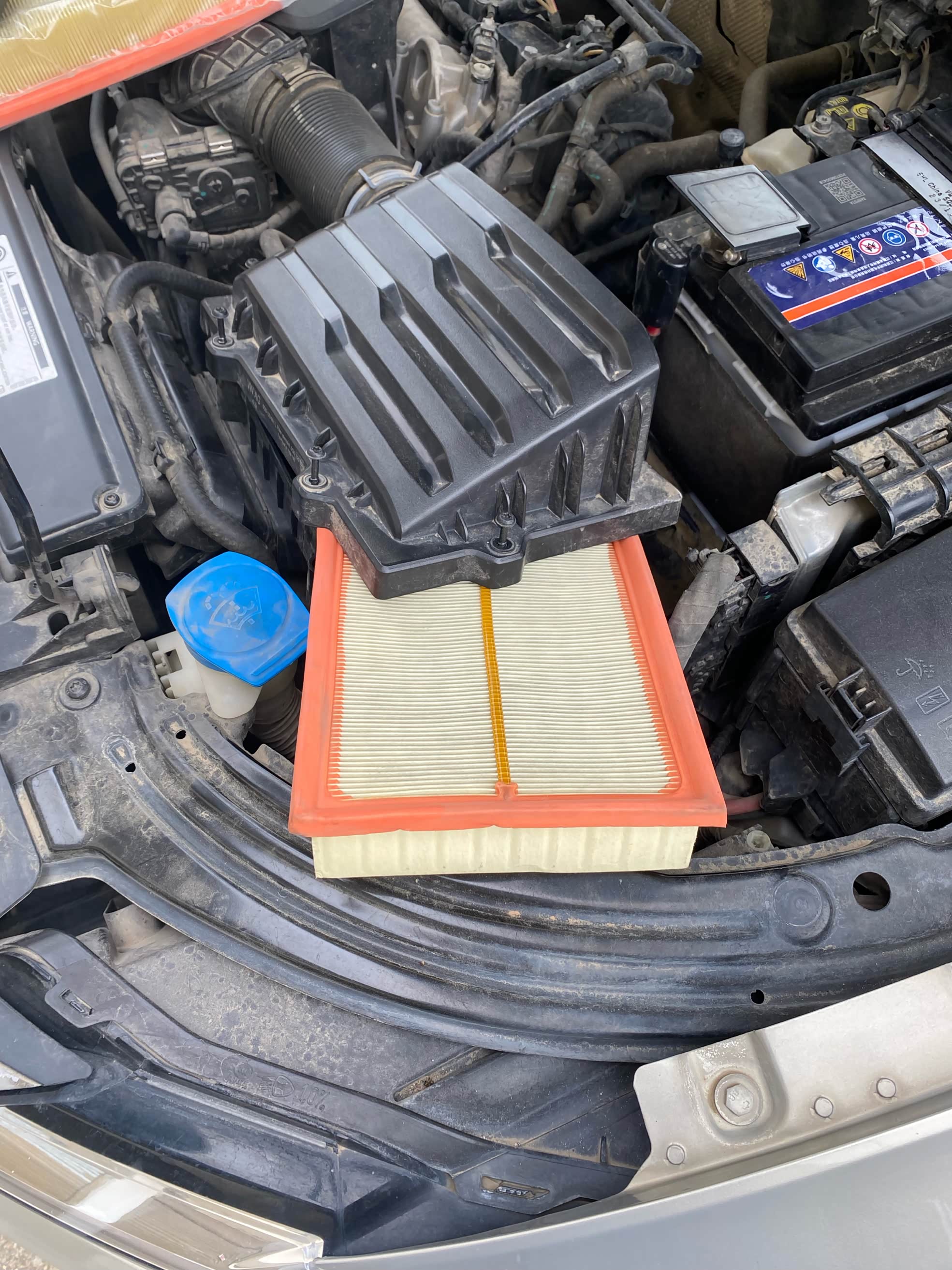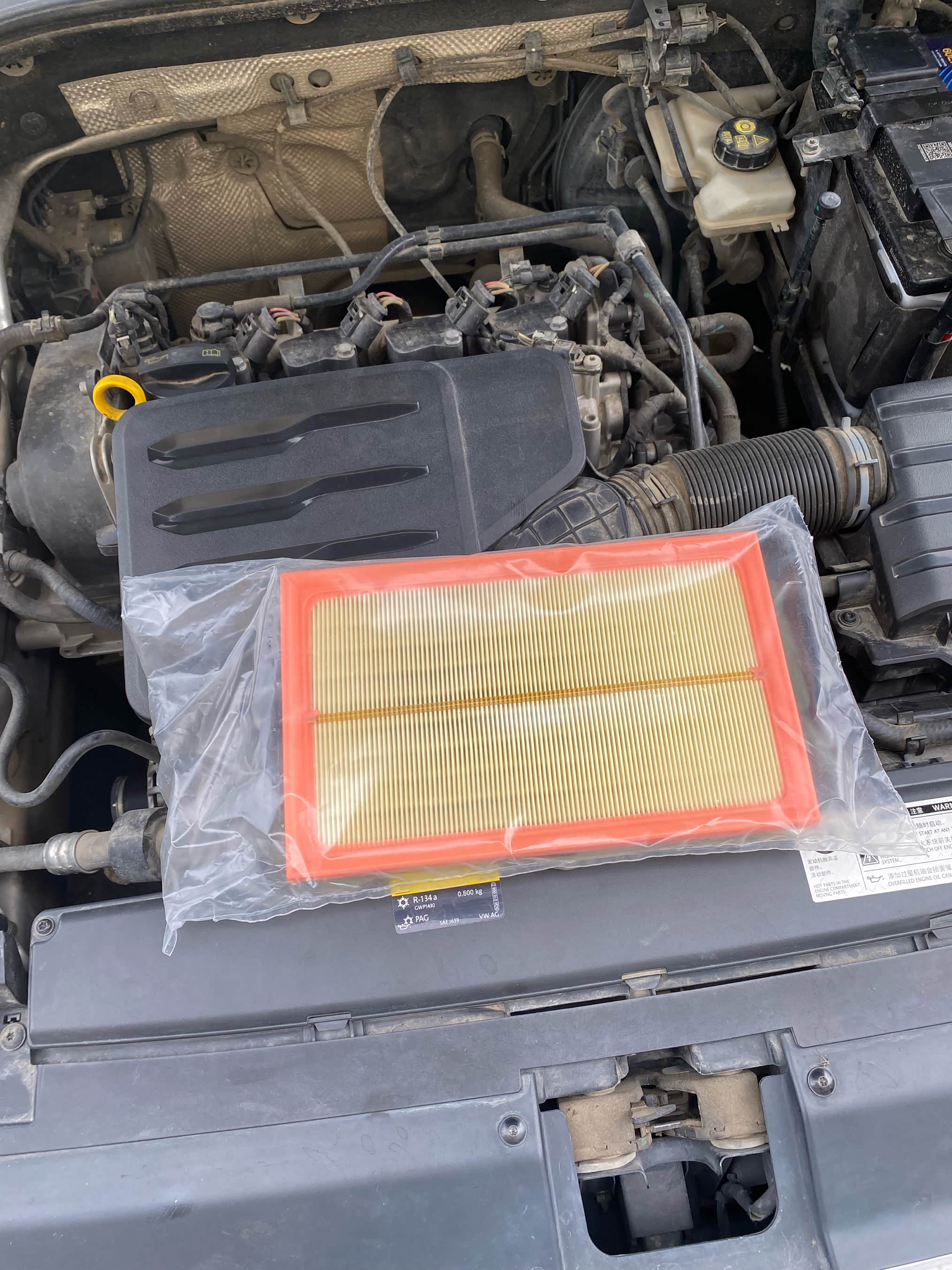 近距离拍照来查看一下。正是因为有了空气滤芯的阻挡,它才不会进入到发动机的内部。既然讲到这里了,就来讲讲空气滤芯的作用,空气滤芯的作用就是空气中的杂质给发动机提供干净的空气。这样子的话可以有效的减少积碳,节省油耗。让发动机保持的干干净净的。空气滤芯的话我们可以选择定期更换或者是检查更换。保养手册的话好像是2万km更换一次。但是也要根据我们的日常使用情况来判断。如果说灰尘比较大,那我们可以提早更换,如果说环境比较好,当然也可以延长更换。这个并没有明确的标注