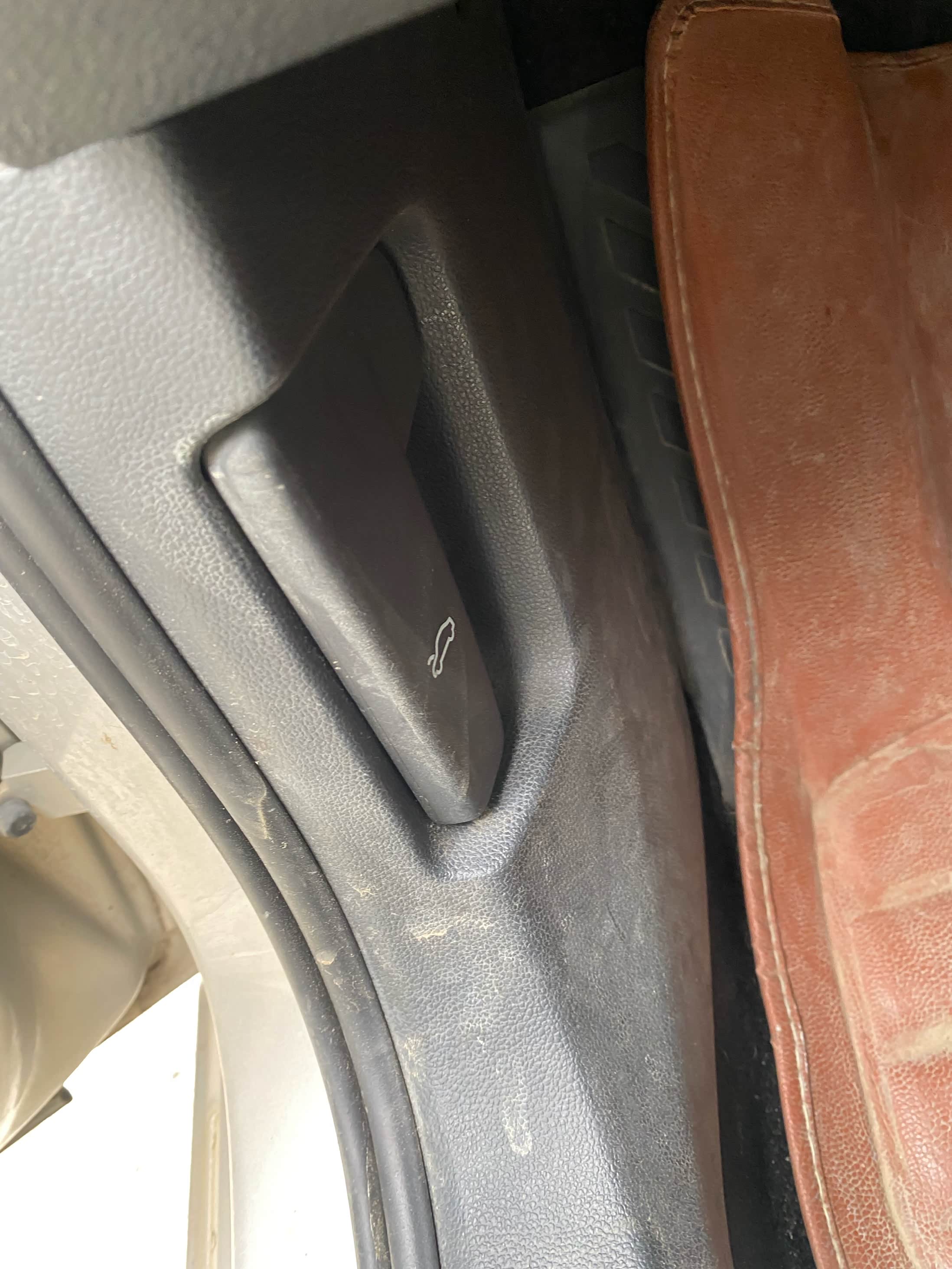看到有弧度这个开关了没有把手伸进去然后往上一压就可可以把引擎盖给拉起来了。