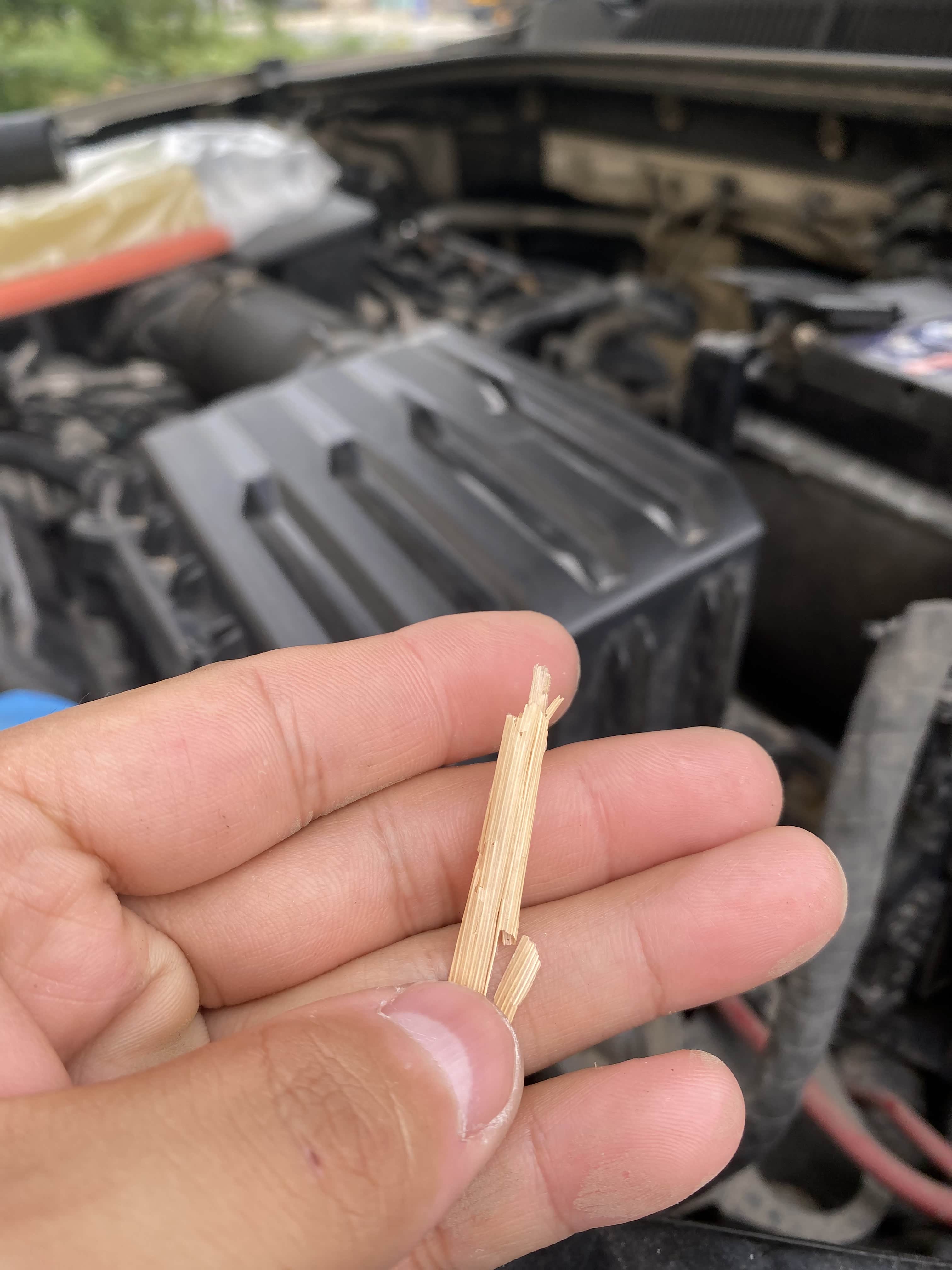拿出之后可以看到空气滤芯的盖子底部竟然有一个麦杆儿。这个上次在店里面检查的时候,师傅都没发现吗?看来自己动手还是更细心一些。