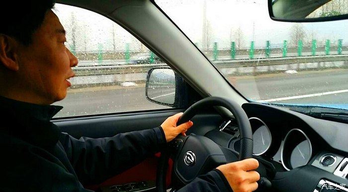 然后我们继续上路,再过2公里,就可以下高速了。不过是换了个驾驶员。就是下面这位帅哥。他可是个玩车的老把手了。他也是第一次开我的这个GX6,他说开着感觉挺好的,驾驶姿势很高啊,事业很开阔。
