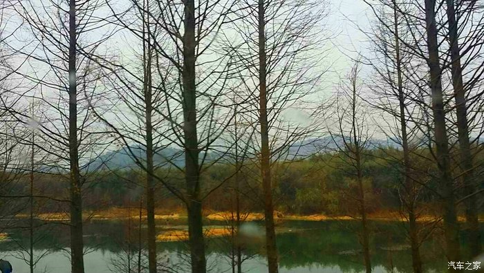 看到是不是下雨的意思?玻璃上雨水。看看是不是冬季的意思?外面的杉树已经只剩下树干了。南方的冬季特别的湿冷。阴霾的天空中飘着雨丝,走在乡间的道路,有一种别样的味道。