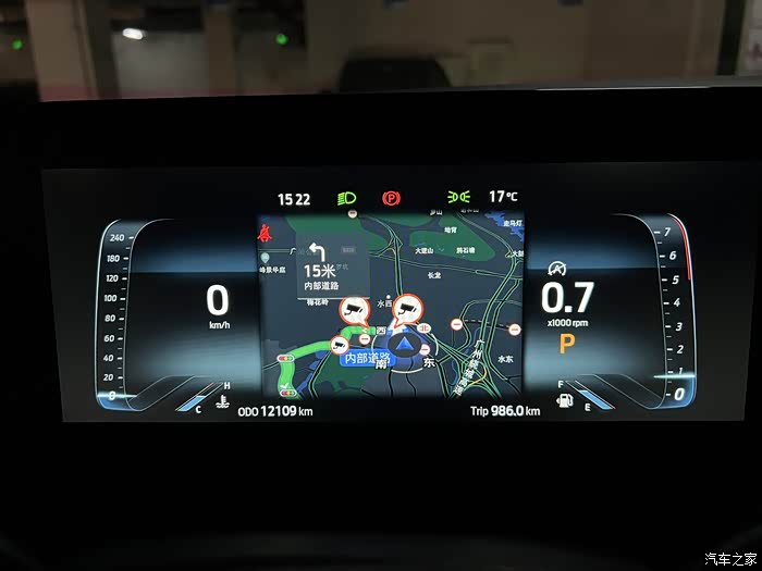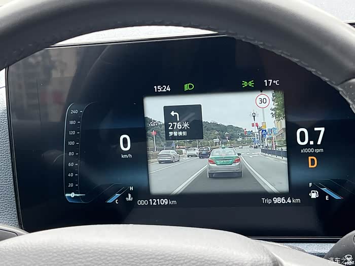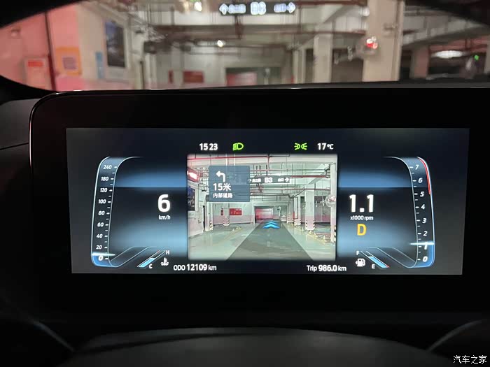 这是切换到AR实景导航地图界面之后的样子,这样不用看中控屏了,直接看仪表盘更方便些。