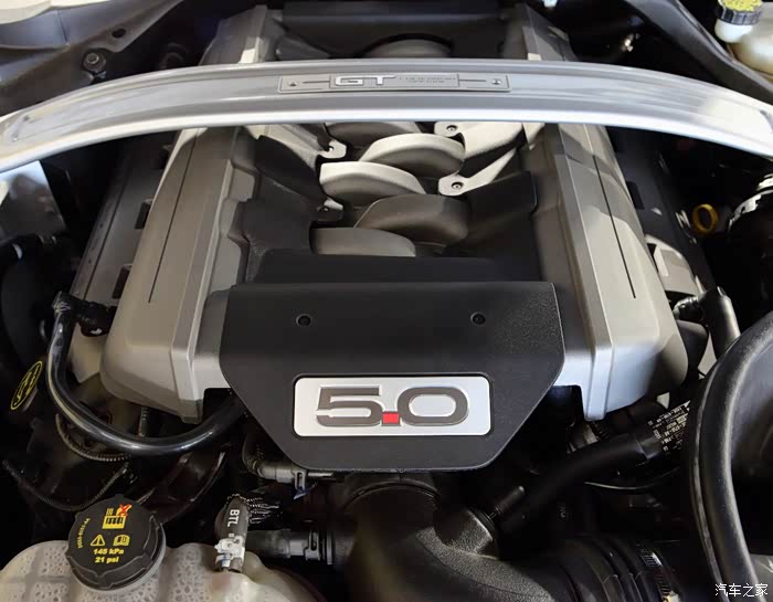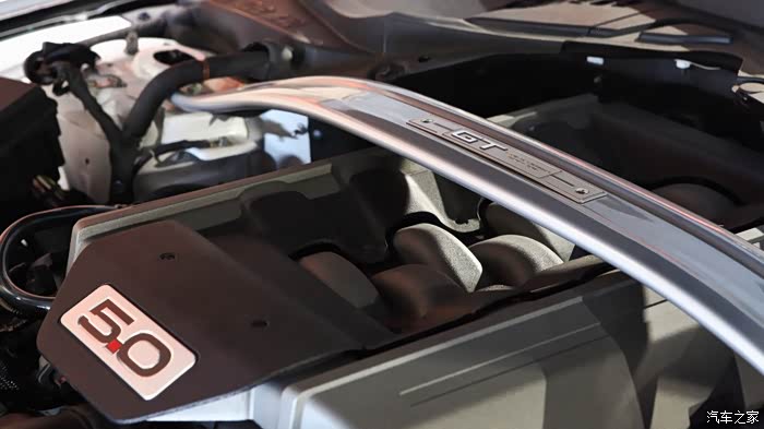 Xiaoyu:“8缸发动机我怎么看怎么喜欢,可能就是对马力的崇拜吧。还有发动机上面这个Strut Tower Brace也很有视觉冲击。还有发动机盖板上的5.0 标志,Brace上面GT的铭牌,都在极力表示这是台猛兽,是匹野马!”