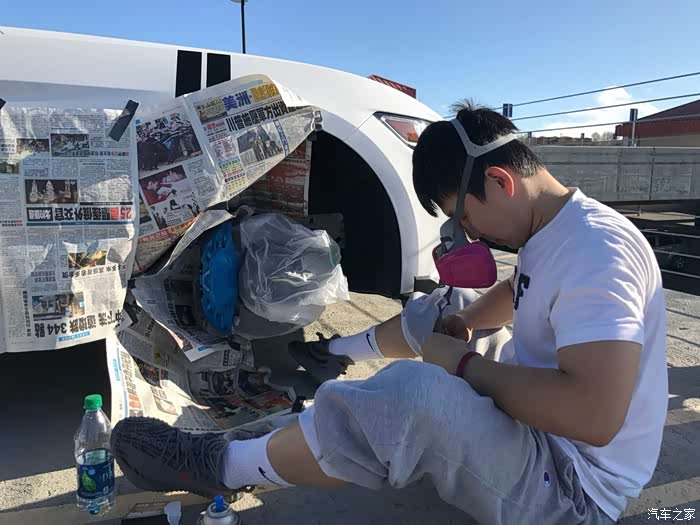 Xiaoyu:“喷漆的时候因为以前没喷过,全都是自己摸索着来的。刹车盘包的不严实,喷的刹车盘上全是金色,还喷了自己满手的金色,特别难洗掉。”