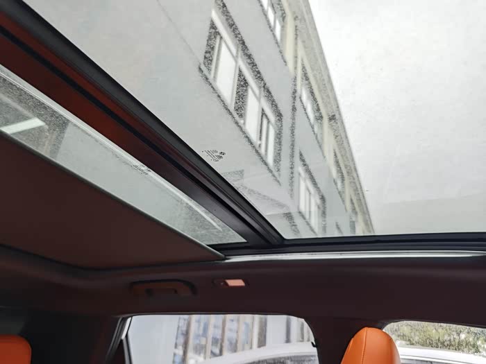 按动开关打开天幕帘可以看到它配备了可开启的全景天窗,热的时候可以打开天幕帘,不热的时候可以打开,在车内躺着欣赏风景。