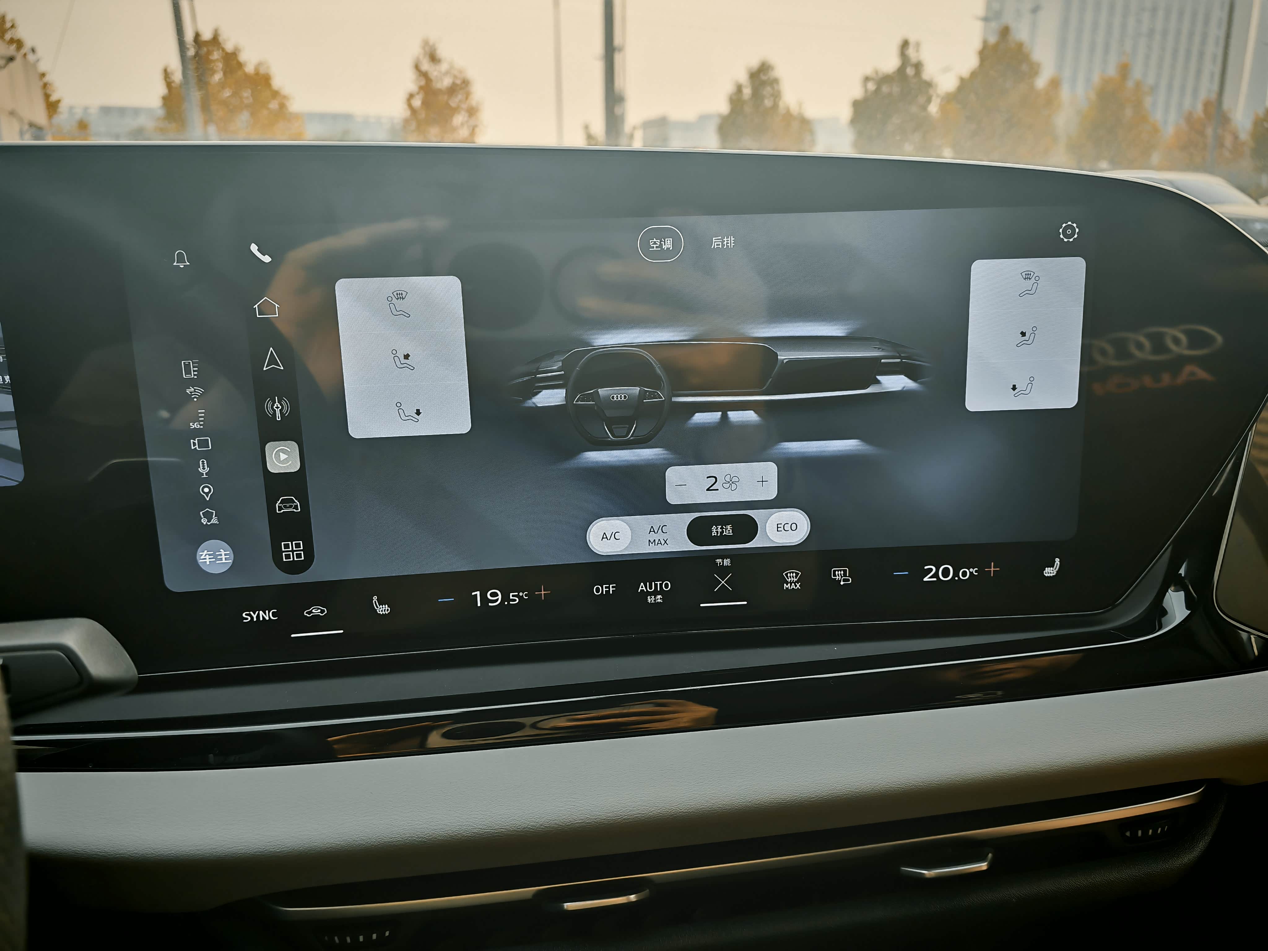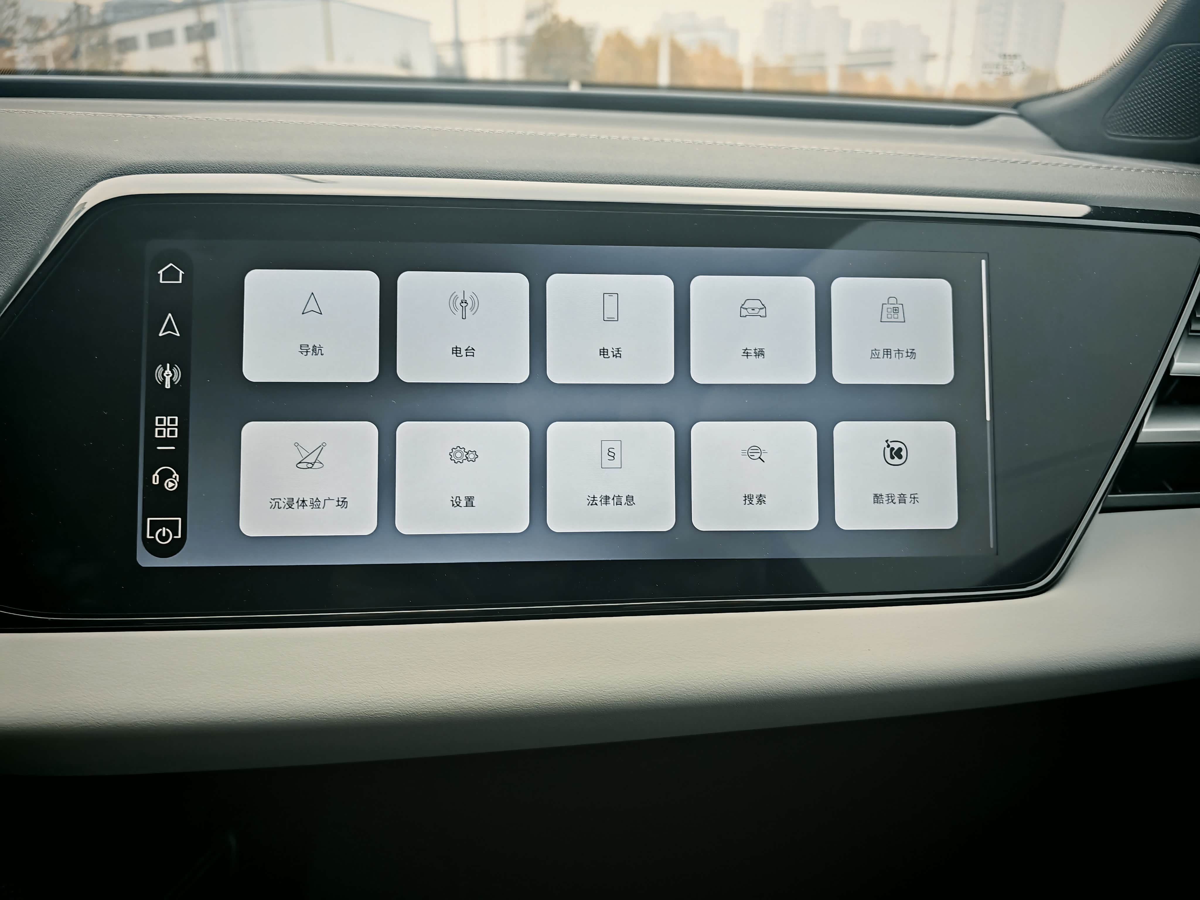 做进去的刹那这是奥迪吗,双联屏的环抱式造型面向车主,副驾的防窥副屏设计,跟国产的三联屏有点异曲同工,但是我更喜欢这样的设计。