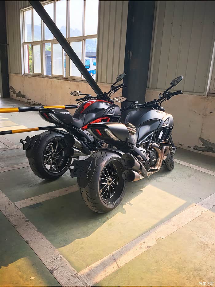 提车一周时间,加上夜里遛弯和骑了两趟区县大概跑了700公里。回来就没骑了,停车库感觉有点累。VMAX放了一个多月了,昨晚饭后把VMAX骑了40公里。刚刚在车库上车的时候还不适应了,又感觉有点怕,脚落不实地,车比diavel笨重太多,脑子一下还没反应过来,但是毕竟是骑了三年的车,没摔过一次,还是能稳稳当当的骑出去溜一圈的。以前骑了vmax后回来开汽车,感觉汽车那是一个舒适,简直没有振动,没有噪声,坐垫宽大。现在是了vmax,对比diavel,就像汽车对比vmax一样。vmax比起diavel,声音,振动,离合,那是一个叫如丝般润滑。简直感觉在骑很高科技的摩托一样。diavel就是一台声音,振动都很原始的机车。杜卡迪经常挂挡挂不到位,不管在几档间很容易挂到中间,真是处处有空档啊。骑行总95%是找不到空档的,挂一档非常生硬骑行姿势相对vmax更靠前,两手更外张。不过呢,杜卡迪人的一句话,它有很多缺点,但是我能克服它,我还是喜欢它。不管这句话说出来出于什么原因。vmax和diavel不重复,前者巡航低俗不压弯很享受,真的是在享受骑行,和旅行一个感觉。后者享受外形,还享受什么?如果没买vmax,我只能体会到享受他的外形,买了之后对比vmax相对来说我享受他的操控,的确这么大的车骑起来真比821差不了多少。坐高矮,再不用打薄坐垫,或者穿厚底鞋,稍微厚点的鞋都能双脚全面落地。好像是专为亚洲人设计的。