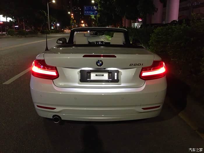 4月26日签约下订,7月15日车子到广州,月底到4S店,8月1日提车。2系220i,矿石白外米黑色内饰,选装了舒适进入、定速巡航、驾驶辅助、自动泊车、哈曼卡顿音响等。