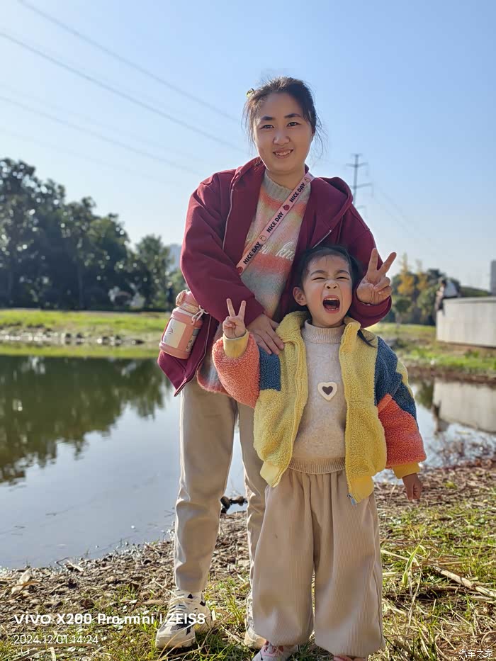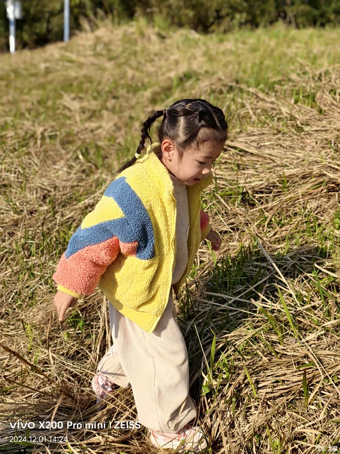 入园后不久就是一个池塘,崽崽对有水的地方总是很感兴趣,于是我们陪她小心翼翼的来到了池塘边,看看有没有小鱼,可能是天气很冷的原因,没有看到鱼,崽崽不甘心的往池塘里丢了块石头。看到水花四溅,他的脸上的愁容马上又变成笑脸了。小孩子的快乐真的很简单,所以我也很愿意和她待在一起。