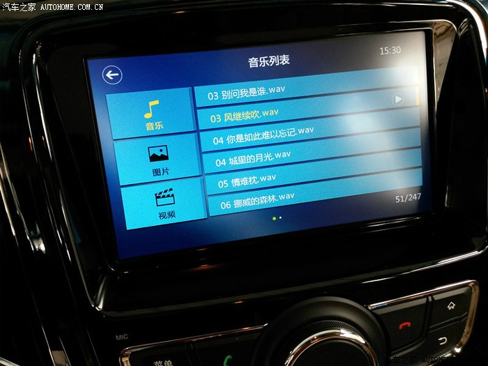 4、中控大屏是鸡肋,没有导航。但可以连接手机、可播放WAV格式无损音乐、倒车摄像头可随方向转到而转动