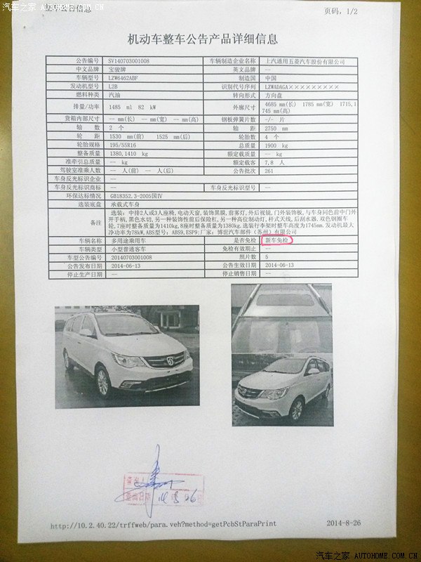 3、验车,新车免检无需上线,直接到车管所办理(准备资料:身份证复印件、暂住证复印件(本地人忽略)、机动车公告详细信息、合格证复印件、车辆一致性证书复印件、发票复印件、车辆照片、车架号发动机号拓印条)