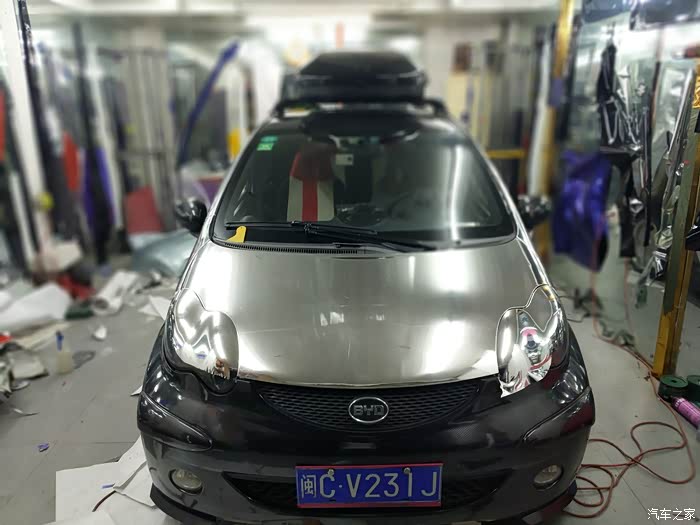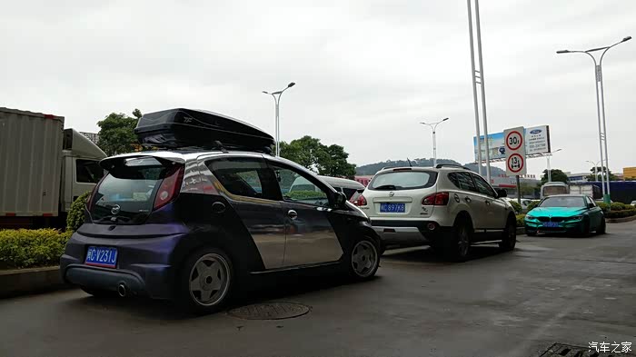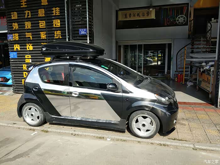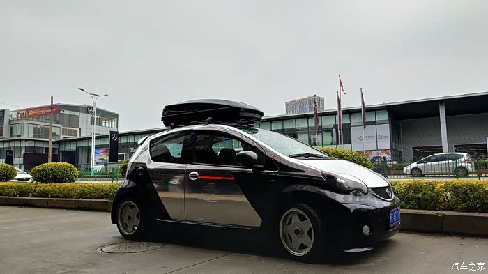 车顶箱到货忍不住立马装上,这时候车只贴了一个侧面
