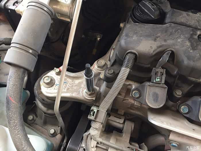 下面就是怎么安装了,因为之前想安装发动机盖,所以对发动机舱研究比较多,看着安装图示很容易就找到三个孔位。