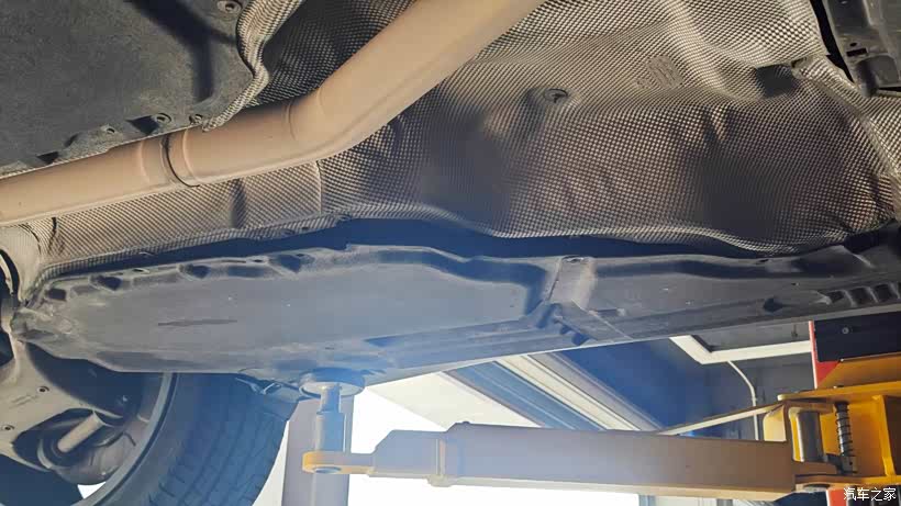乘升起来的时机,查看了底盘部分,右后轮内侧(车尾视角),非常好,不漏油,也没生锈,