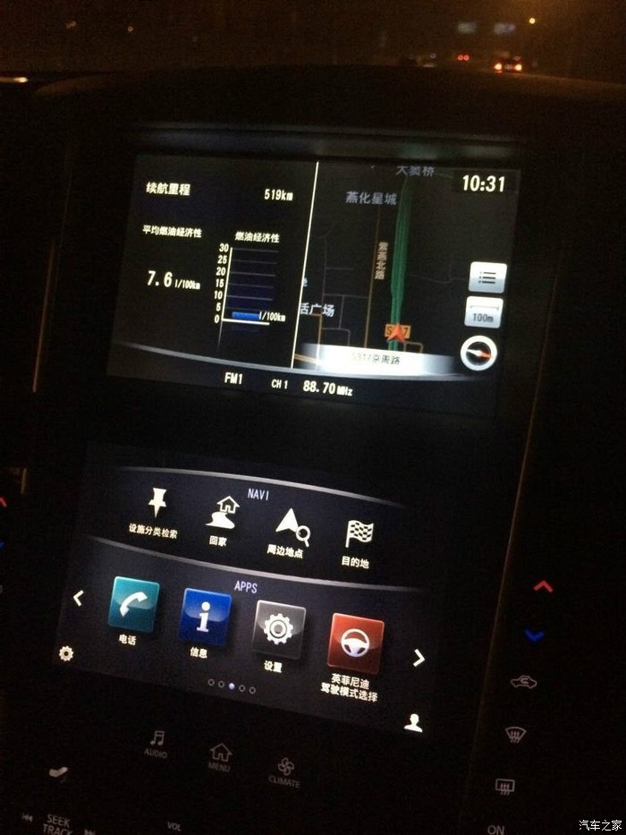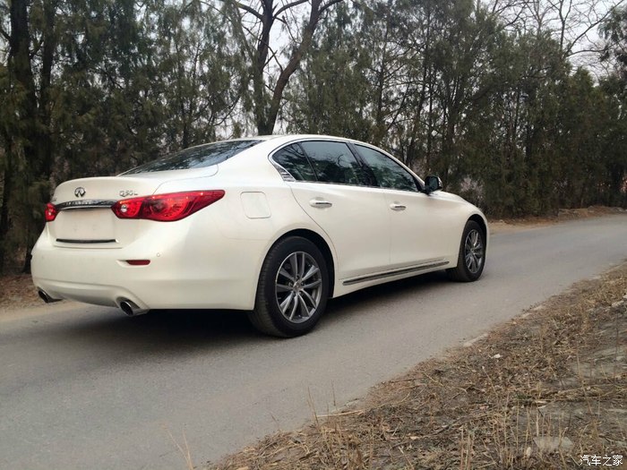 开着小Q跑了500多公里,先说说大体感觉(以下尽代表个人意见,不喜欢的可以无视):俗话说,男人看车就像看女人一样,有人喜欢窈窕淑女型的,有人喜欢狂野奔放型的,每个人的欣赏水准都不一样。。。光看外观,小Q不是那种看一眼就让我无法自拔的车型,全车各种镀铬条真的让我接受不了,尤其是侧裙上的镀铬条,我都不知道怎么弄(短轴版无视)后备箱上东风英菲尼迪的LOGO,就像是挺漂亮一小姑娘,脸上长个大痦子。。。但小Q属于那种越看越禁看,越来越想开的车型。。。内在方面小Q算的上是上得厅堂下得厨房的女人,内饰很满意,30+万的车,该有的功能都有了,加上中间俩个大屏,可以很好的把音响系统和导航系统分开,不会因为开着导航想调音响还要把导航最小化,还一点,不知道大家注意到没有,小Q的导航很好的跟仪表盘结合起来,在使用导航过程中,不用看导航屏幕,仪表盘上就有显示。。。要说缺点,In Touch系统反应有点慢,电动座椅不带记忆功能,全车储物空间太少,不是电子手刹。。。性能方面:性能是我最注重的方面(才跑了500公里,没怎么深踩)之前就看过M274发动机的评测,站在小Q面前,M274的噪音的确有点大,涡轮太小倒置前期介入过早,后期无力的缺点,要知道的我的小翼,1.8的排量都用的大4号涡轮。。。小Q的表现在我的意料之中,因为受到体重的限制,加速感觉没有那么轻快,运动模式档位切换顿挫感很强,总之足以够让你秒杀大马路上的各种大众神车(R系车主无视)操控方面:由于体重问题,性能上面的差距在操控上面得到拟补,高速过弯,并线车身很稳,悬挂调校是我喜欢的那种类型,很好的把路面信息反馈给我,后驱车转向精准在小Q的身上很好的表现出来,好的让我觉得有点过了,转向很灵敏,让我觉得再高速上,一不小心就会并线,不知道小Q主推的线控转向怎么样?喜欢激情驾驶的车友们,可以换套绞牙和防倾杆,相信小Q一定给你带来不一样的操控感觉。。。轮胎方面,4条普利司通博天族胎燥不像固特异那么大,属于可接受的范围,就是不知道抓地怎么样?不过单从X宝的售价来看,小Q的配置还算对得起广大车主啊,说到轮胎,我就一个问题想问,小Q用的普利司通博天族不是防爆胎,只是胎壁比较硬,为什么没有备胎呢?望大神给指点一下。。。后期费用方面:小Q后期基本上除了加油,保险,日常损耗,没有什么需要花钱的地方了,新车4年10万公里免费保养,我详细问了一下4S店,只能保养9次,首保算一次,然后一年1次小保养,1次大保养。。。油耗方面:本人并不是特别关心油耗,30+万的车都买了,也不差那点油钱了。小Q跑了500多公里,表上显示始终是8.5左右,最低一次到过7.6,也不知道正常不正常。。。说了这么多,女人爽不爽,上过才知道,小Q好不好,开过才知道。。。