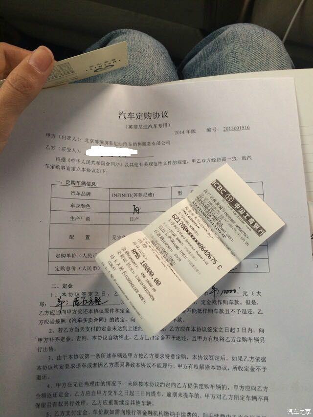 要说这车到这速度,我真得表扬一下北京博瑞英菲尼迪4S店,3月18号订车,29号就通知车到了,让我去补齐全款,但是合格证没到,还要等几天。。。这事之前也遇到过,可以理解,可以是交了全款车不让我开走,我就不能理解了,最后一通协商,原来是4S店怕车主开走这段时间出了事故后责任问题,最后我跟4S店签了份协议,才让我把车开走,还给我加一满箱,这点比别的4S店强多了,别的都是给100块钱油卡,要知道100块钱对小Q来说只能算是塞牙缝。。。4月3号通知我合格证到了,马上就可以缴税上保险了,但是上牌可能要等清明过后了,要是着急开,可以先办一个临牌。。。又是各种托关系,4月4号成功上牌,清明节可以开着小Q去玩耍了。。。
