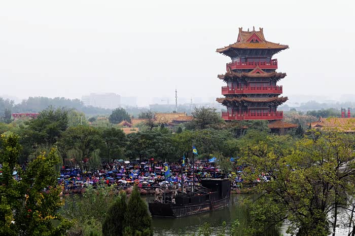可是今天,它没落了。从当年的首都没落到今天的四线城市,而且还紧挨如今的新一线城市郑州,这多少有点尴尬。不过,相对于郑州市区旅游景点的贫瘠,开封城的景点要傲娇的多。清明上河园、龙亭公园、开封府、包公祠、大相国寺、铁塔公园、大宋武侠城,密密麻麻扎堆在开封市里,跟下饺子一样,热闹极了。