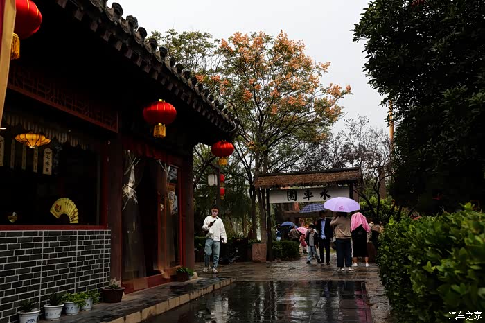 万万没想到,我们去的当天一直阴雨不断,路上堵车,园内堵人,再算上之前预约门票分时段入园“堵”票,三堵夹击之下,我们的清明上河园之行缩水缩到怀疑人生。原本适合玩一天的景点,被压缩到只剩下三四个小时的游览时间。不过既来之则安之,雨中游清明上河园,也算领略另一番风景。