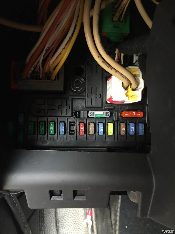 5、拉下驾驶座左腿位置手套箱,找到备用保险片组合件,将10A保险片换上,盖好引擎盖,刷雨刮测试,可喷水;