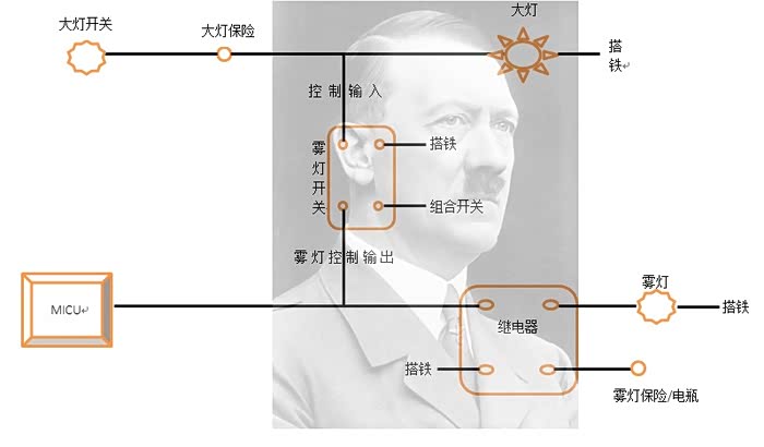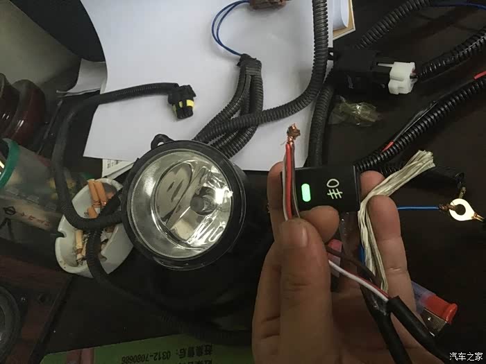 雾灯安装思路:新款风范的雾灯是开启大灯之后才能开启的,所以我用大灯的输出当作雾灯的控制线路。雾灯按钮的指示灯使用车内组合开关灯的输出,雾灯按钮的状态灯随雾灯的输出亮。雾灯开关控制继电器的输出线,并联给MICU(多路通控制器)就能实现仪表雾灯开启的状态显示了。