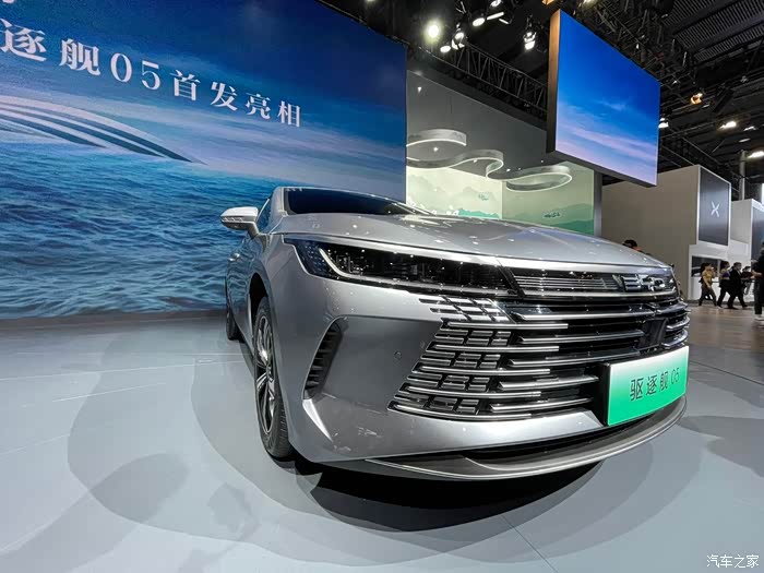 外观方面,驱逐舰05新车采用了全新的设计语言,区别于现有王朝系列以及e网在售系列车型的设计风格,整体看上去更加具有辨识度。具体来看,新车采用了多边形大尺寸前格栅造型,内部则以虚线式元素进行点缀,搭配比亚迪全新LOGO,以及两侧大尺寸竖状进气开孔,让新车看上去十分运动。