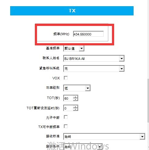 - 对讲机A,CPS中,选中前面设置的“数字信道”>右侧上方点击“TX”->“联系人姓名”下拉列表选择“BI1CAT-All”,写入对讲机