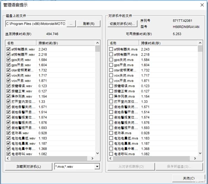 * 勾选需要加载到对讲机的语音文件