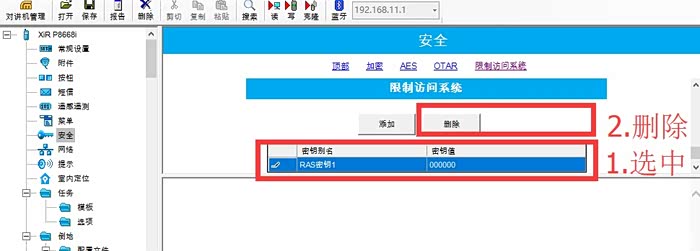 CPS中,“XiR P8668i”->“安全”->右侧上方点击“限制访问系统”->选择已存在的密钥->点击“删除”,删除掉已存在的密钥,重新进行写入即可
