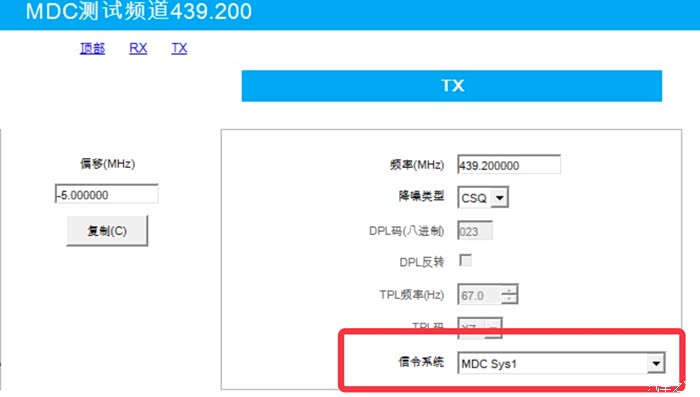 - 将““TX”的信令系统选择为“MDC Sys1”