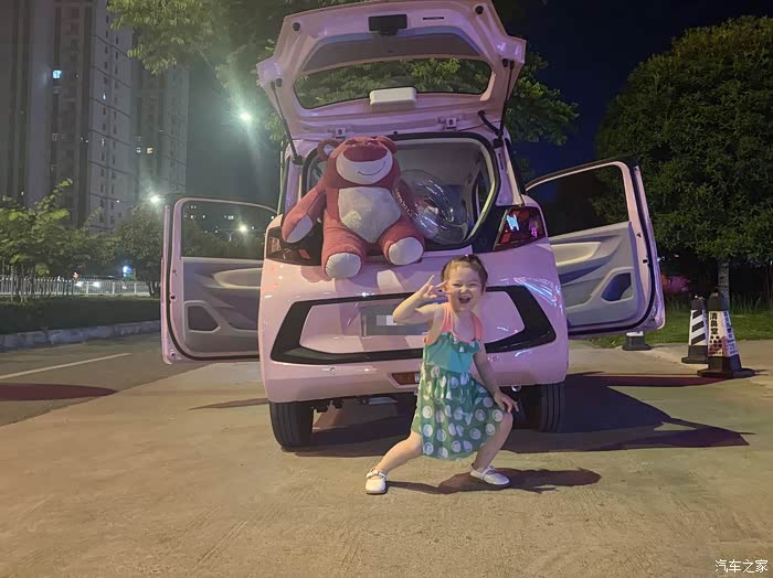 可能是第一次看到我开这车去接她,她激动的每个角度的拍上几张,你看后备箱拿着游泳圈靠在草莓熊上别提多开心啦