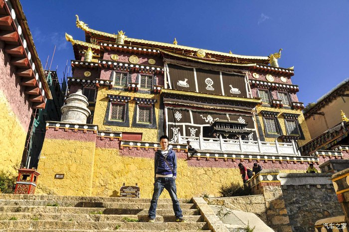 在古镇吃完午餐,休息一下后,我们又继续行走了半个多小时,来到了颂赞林寺。它被誉为“小布达拉宫”,它依山而建,外形犹如一座古堡,集藏族造型艺之精华,又有“藏族艺术博物馆”之称。小伙伴在此留影纪念。