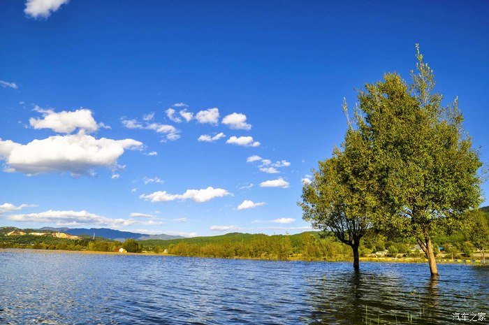 霎时间,天空颜色变色更蓝。湛蓝的天空的反射下湖水也变蓝了!