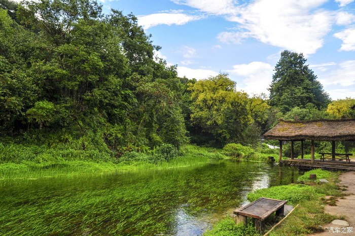 在黑鱼河景区,清澈的溪流中的水草绿意盎然!