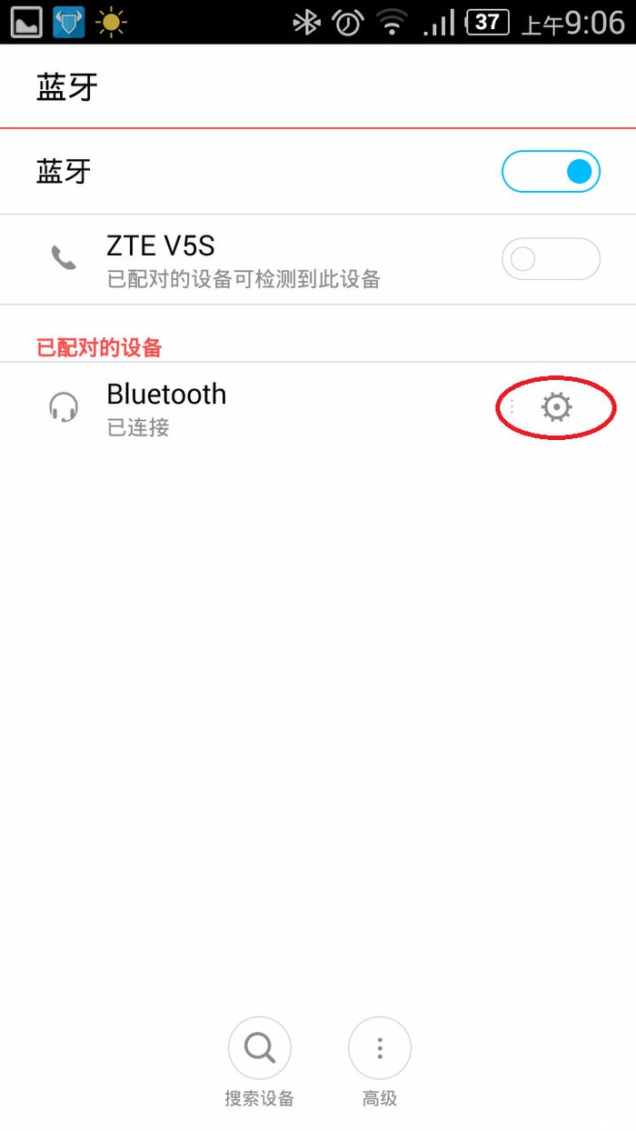 进入已连接蓝牙的配置入口“红色圈内”