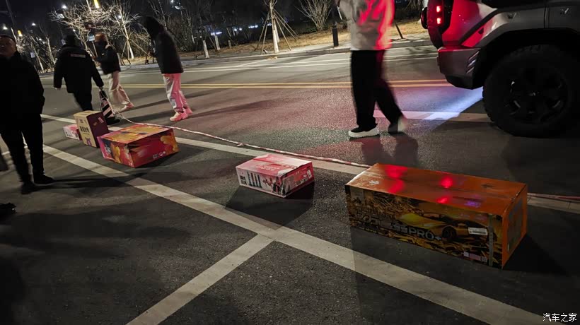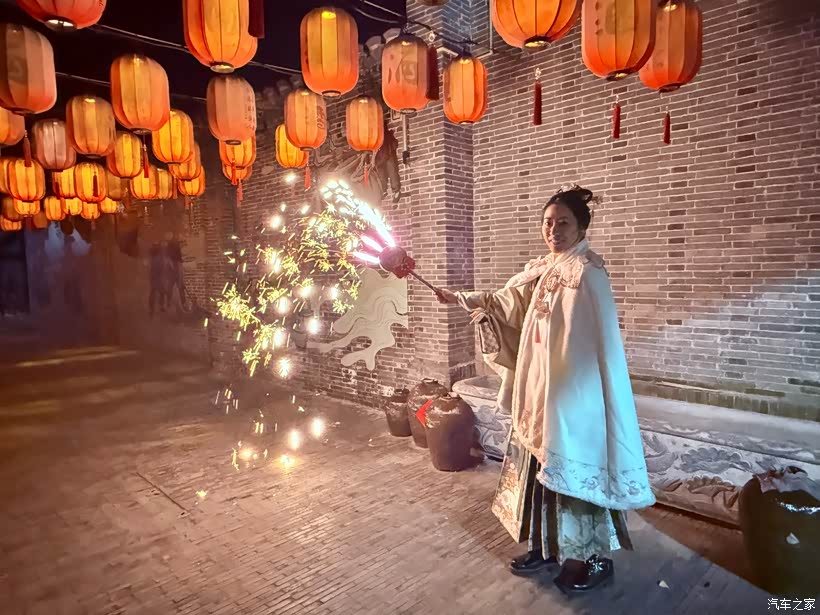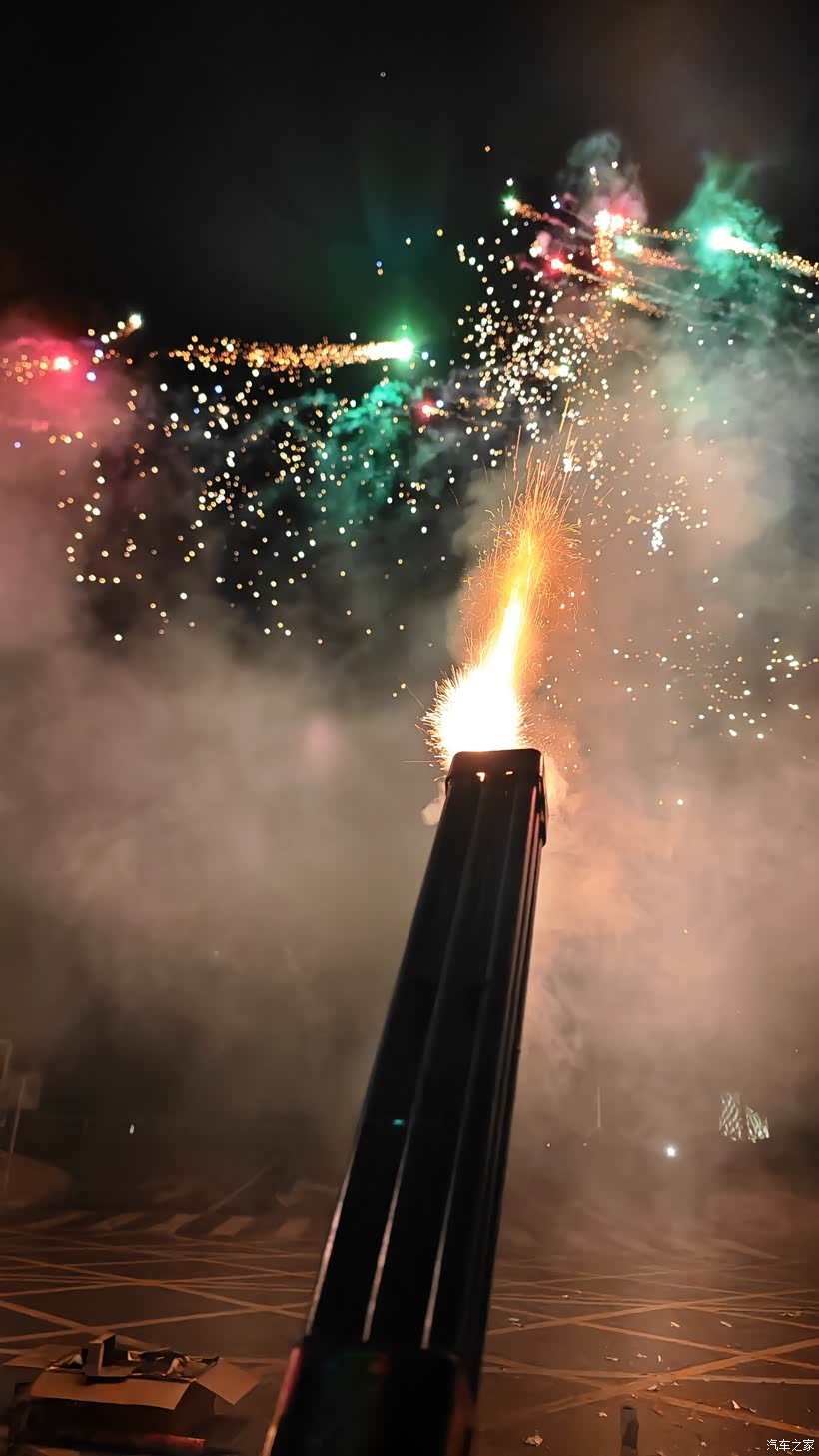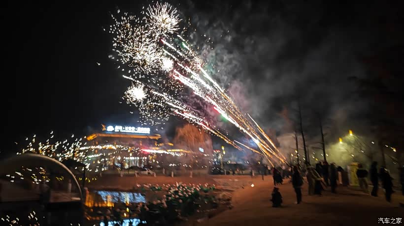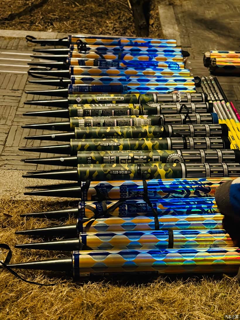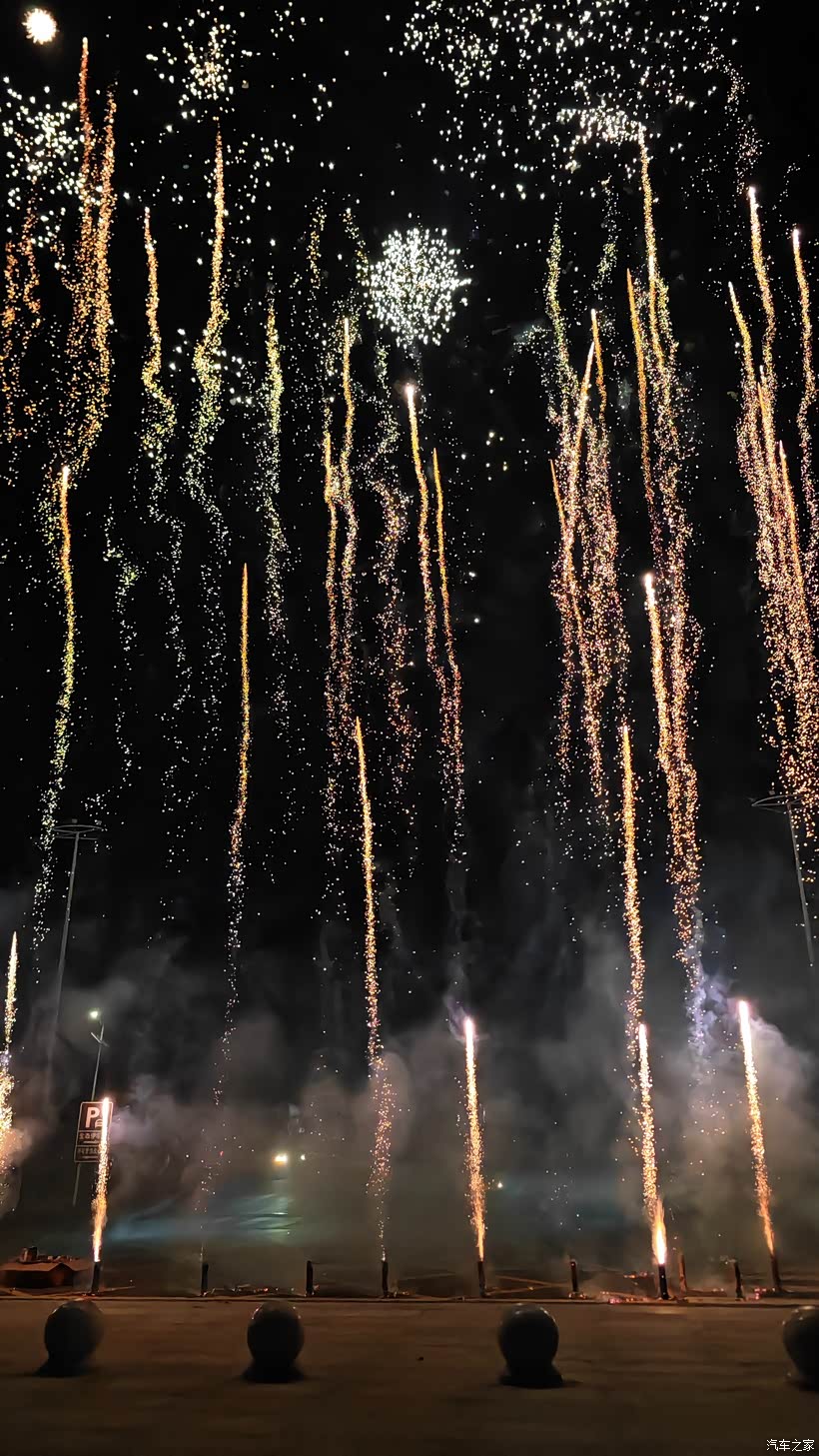 看完灯光秀,则是车友们最期待的烟花狂欢环节啦!我们提前在来的路上采购好了各种绚丽的烟花,在古镇指定燃放区域一字摆开!