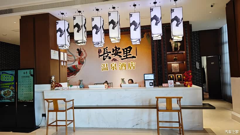 很快抵达长安里温泉酒店,这是一家集温泉养生、住宿、会议于一体的高端唐风主题酒店。整座酒店都是唐风设计和装修,气派的大堂装饰,简约的陈设,每一处细节都蕴含着唐风古韵!
