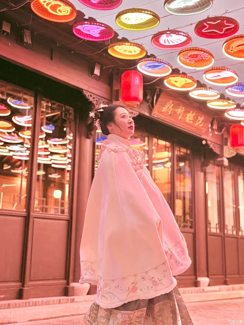 只见一条花船缓缓驶来,船上亭亭立着一位唐装美女,披着斗篷,蒙着面纱,娓娓唱来,天籁的歌声伴着着美丽的夜景,令人陶醉其中。