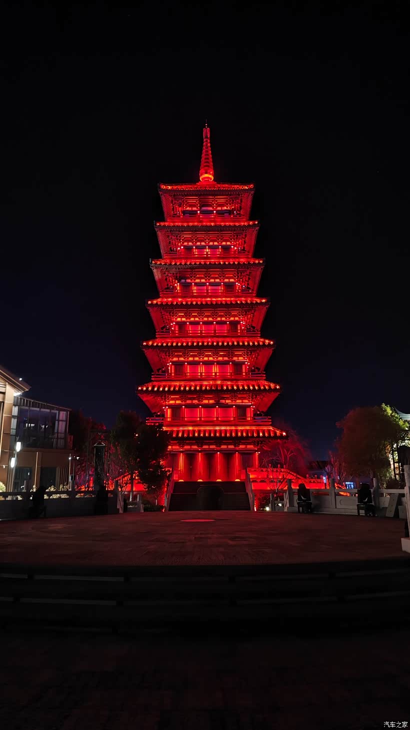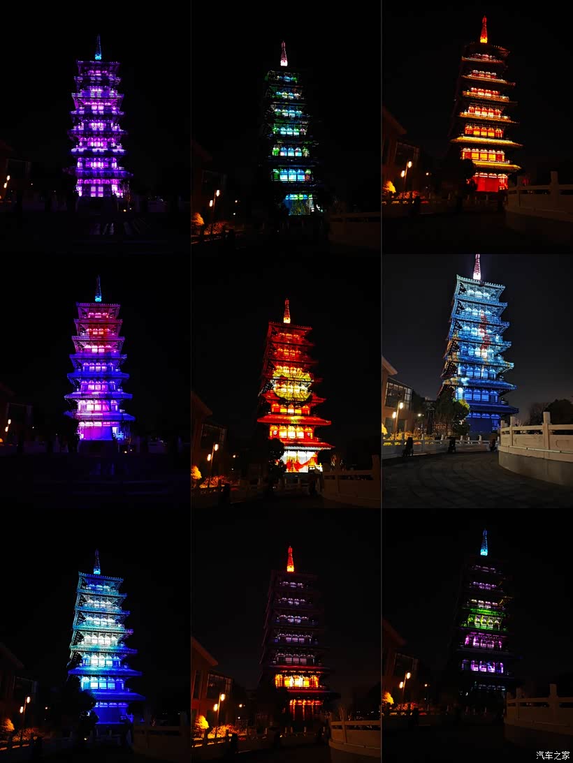 投影机在塔身上变幻出各种图案效果,时而是脸谱,时而是莲灯,配上响亮的音响效果,相当震撼!